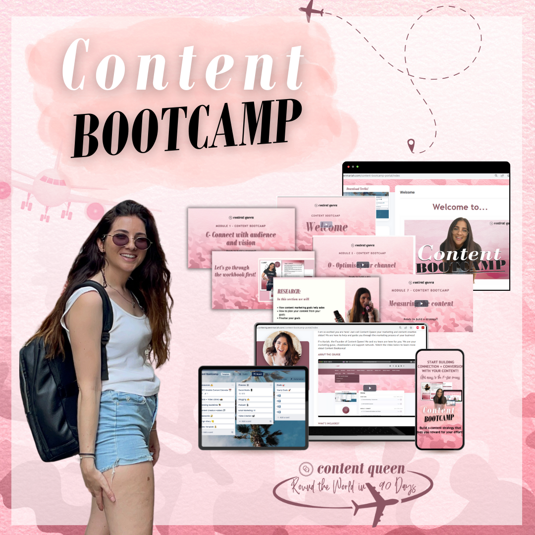 Around the World in 90 days is a marketing campaign run by Content Queen Mariah. It is a campaign to help small business owners and entrepreneurs get off the content hamster wheel, save time (and money), have love and energy for marketing... while also learning about "good" content marketing so they can make educated decisions about marketing in their own business. This will be done through educational content and sharing the 7-step strategy framework so business owners can create their own content marketing strategy!